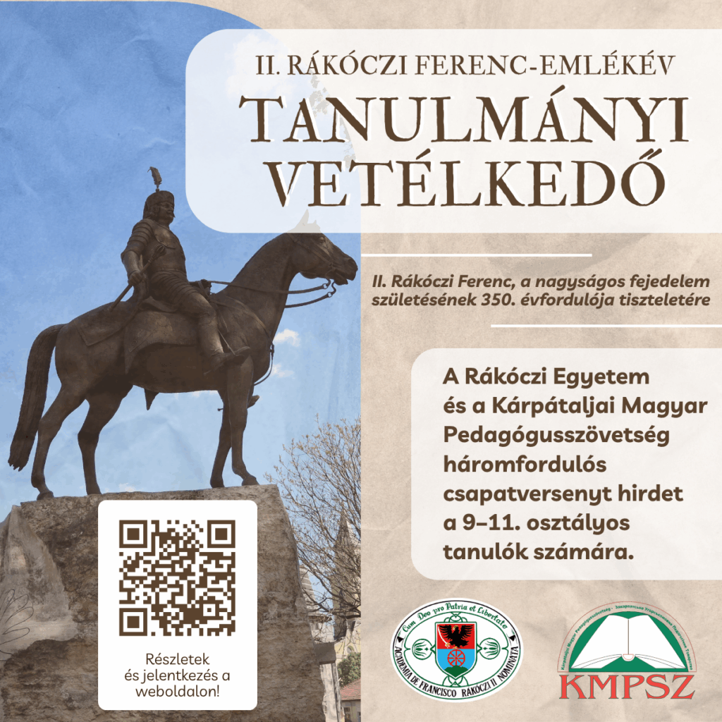 A nagyságos fejedelem, II. Rákóczi Ferenc születésének 350. évfordulója tiszteletére a II. Rákóczi Ferenc Kárpátaljai Magyar Egyetem és a Kárpátaljai Magyar Pedagógusszövetség háromfordulós csapatversenyt hirdet 9–11. osztályos tanulók számára.